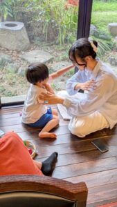 お兄さん、お姉さんとお話しするのも楽しいようで、普段見られない子供達の姿も見せてもらっています。